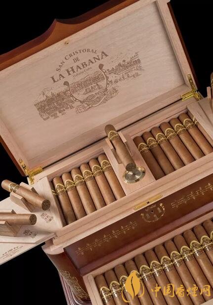 同樣是特別款保濕盒的還有圣克里斯托1519,這款雪茄是為了紀(jì)念哈瓦那建城500周年制作的。圣克里斯托這個品牌來源就哈瓦那城,這款雪茄57環(huán)徑、6.7英寸。使用的包裝非常有特色,是一個頂蓋掀開,雙側(cè)開啟的盒子。