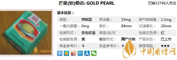 曾經(jīng)有這樣一種香煙,綠色的煙盒上面畫著個盤子,盤子中央擺著一顆金光閃閃的芒果。這是河南產(chǎn)的一款香煙,這款香煙在幾十年前是轟動了全國的香煙,那么芒果香煙多少錢一包,現(xiàn)在就由香煙網(wǎng)小編為大家介紹一下芒果香煙價格表圖片。