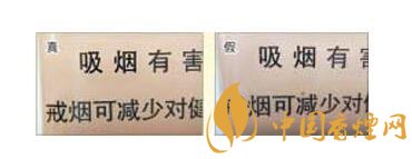 真煙警示語印刷字的邊緣干凈,商標(biāo)紙底色色原點(diǎn)為點(diǎn)狀微小顆粒,印刷細(xì)膩,如警示語第一個(gè)“吸”字的最后一筆捺,起筆點(diǎn)是平頭狀;假煙警示語印刷字的邊緣有均勻的鋸齒狀虛邊,商標(biāo)紙底色色原點(diǎn)為不規(guī)則的點(diǎn),顆粒大,印刷不均勻且粗糙,如警示語第一個(gè)“吸”字的最后一筆捺,起筆點(diǎn)是尖頭狀。