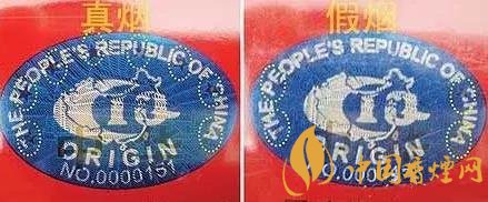 7、真煙背面華表底座有防偽印刷,有清晰可見的“★”及“YC”黃色字母;假煙這個(gè)微縮防偽看不到完整無缺的圖案。